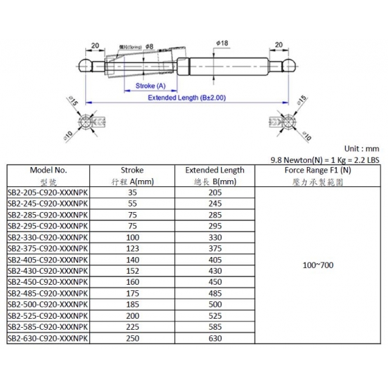 ※訂購氣壓棒時請告知所需要的壓力,或者聯繫我們討論需求。
