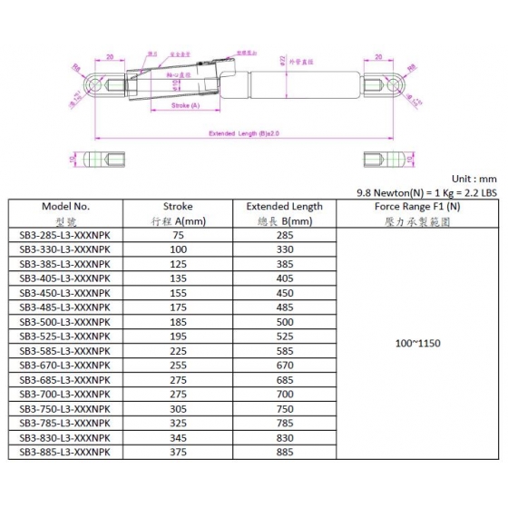 ※訂購氣壓棒時請告知所需要的壓力,或者聯繫我們討論需求。