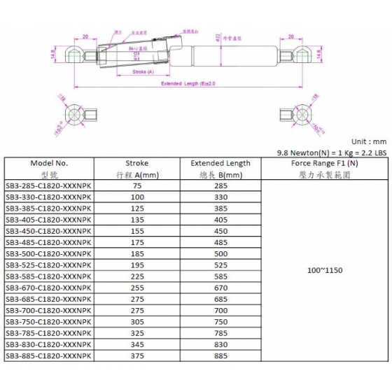 ※訂購氣壓棒時請告知所需要的壓力,或者聯繫我們討論需求。