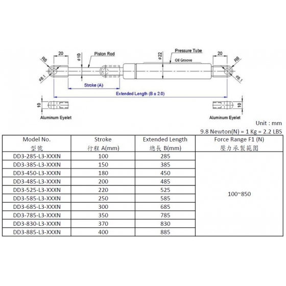 1022-L3(8mm孔) 自由型-動態阻尼氣壓棒