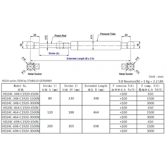 HD24C-C1920M8 壓縮方向油壓阻尼棒