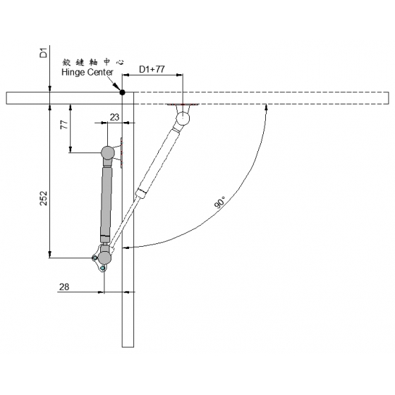 1. 安裝簡易且氣壓棒安裝無方向性,任何方向安裝均具有等速展開門片之功