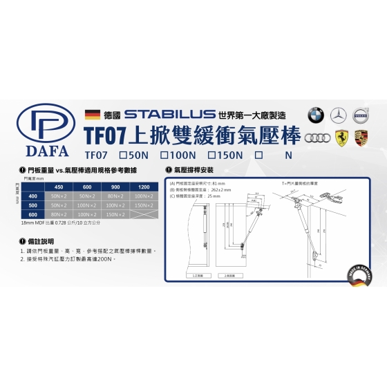 TF07 德國STABILUS上掀雙緩衝氣壓棒撐稈