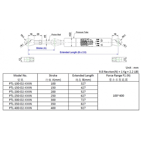 ※壓縮鎖定氮氣彈簧LIFT-O-MAT PTL,具有支撐及推力功能。完全壓縮後具鎖定功能(類似原子筆開關原理)。