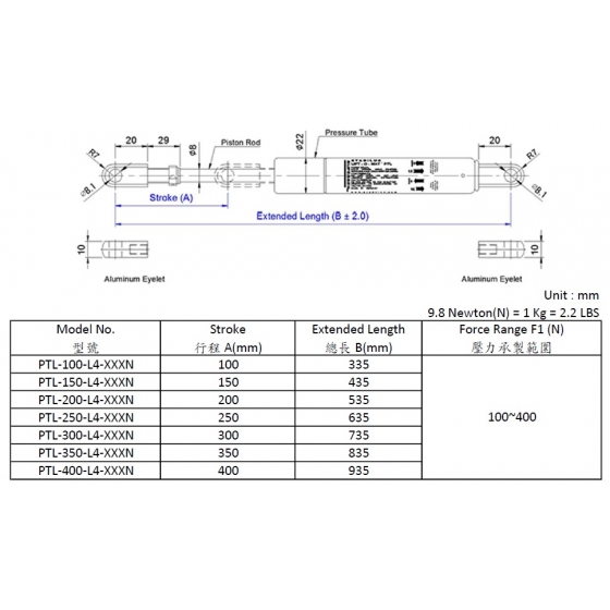 ※壓縮鎖定氮氣彈簧LIFT-O-MAT PTL,具有支撐及推力功能。完全壓縮後具鎖定功能(類似原子筆開關原理)。