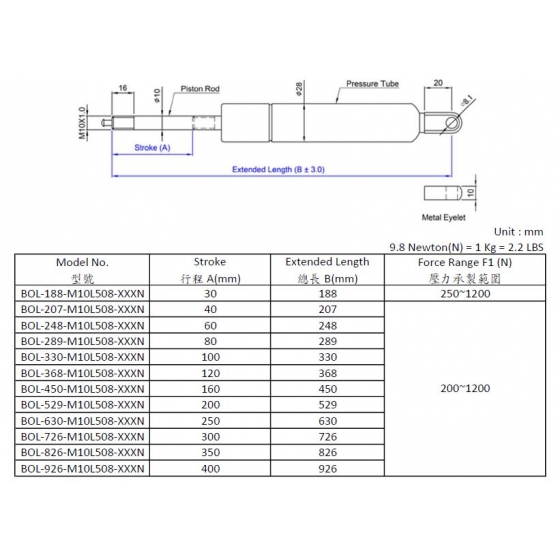 開關定位型氣壓棒BOL系列透過特殊而緊密的活塞系統設計提供精確且舒適的調整和鎖定應用。