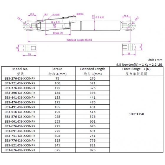 ※訂購氣壓棒時請告知所需要的壓力,或者聯繫我們討論需求。