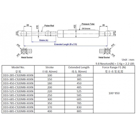 1022-C920M8(10mm孔) 自由型-動態阻尼氣壓棒