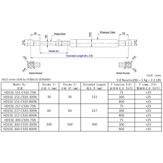 HD15E-C920M6 拉伸方向油壓阻尼棒