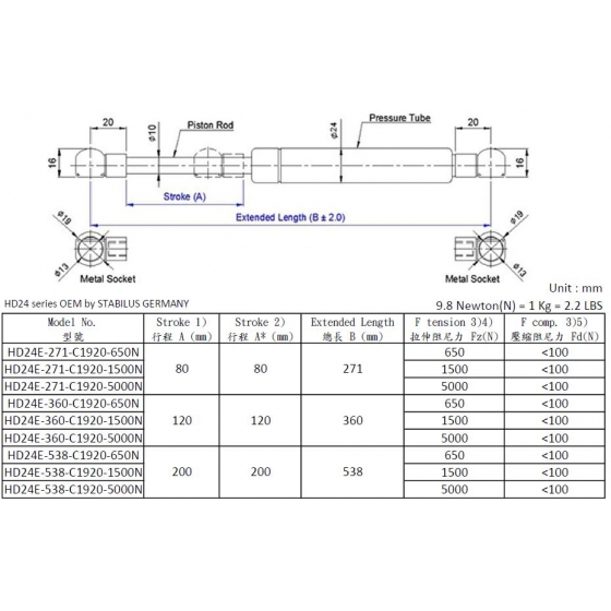 HD24E-C1920M8 拉伸方向油壓阻尼棒