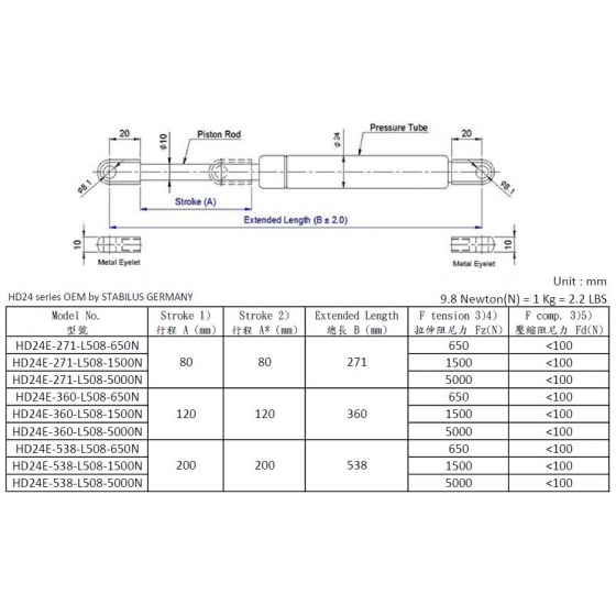 HD24E-L5M808 拉伸方向油壓阻尼棒