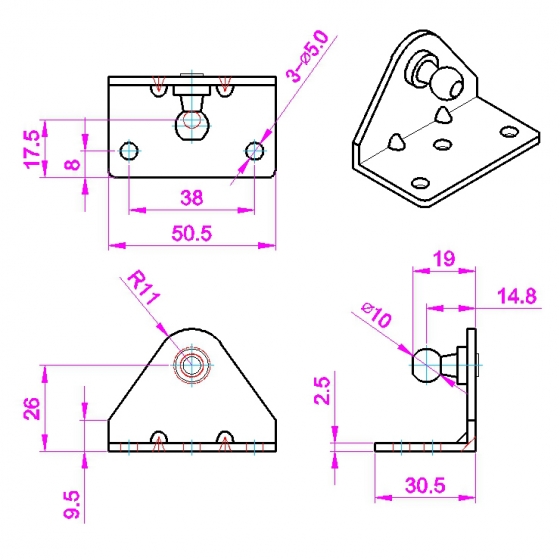 BKT-04-I(球徑10mm)(板厚2.5mm)