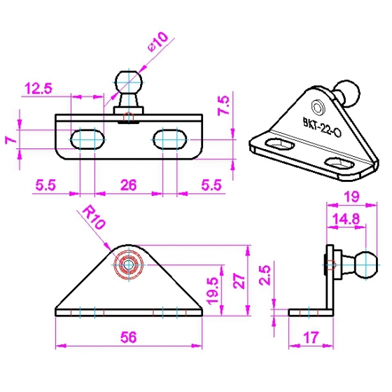 BKT-22-O(球徑10mm)(板厚2.5mm)